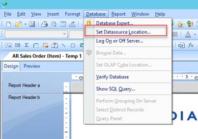 Open from the menu the option to check connection.Database / Set Datasource Location