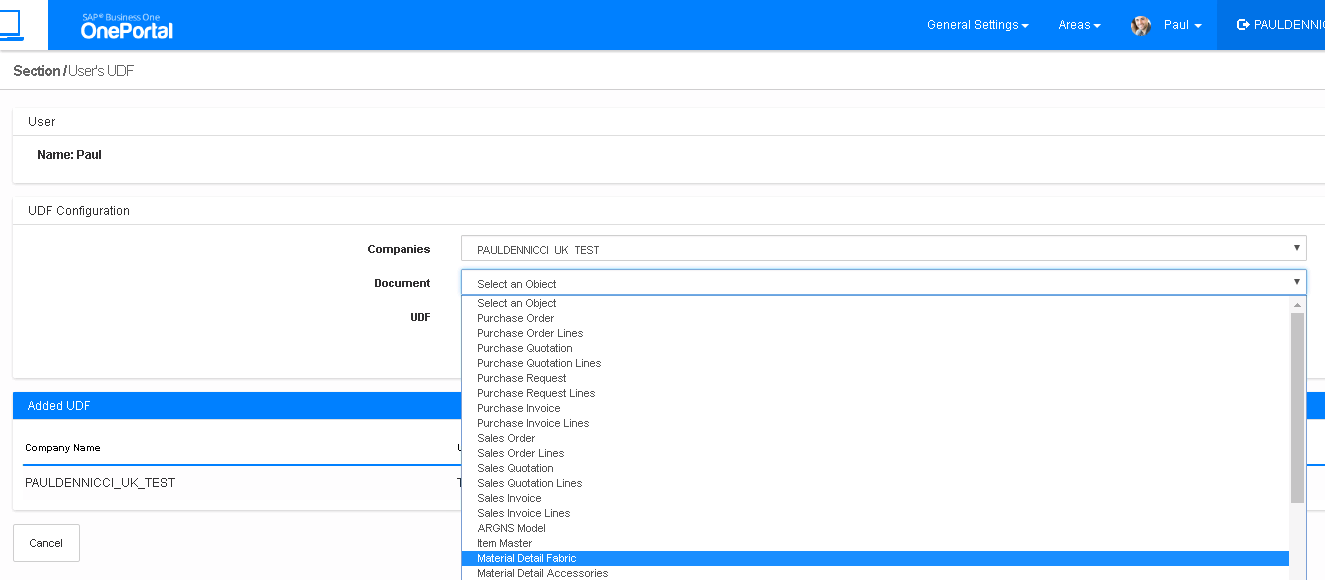 - 3. Adding UDF to material details from UDF User selecting the category tabs.